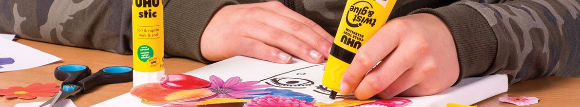 Veľmi kvalitné lepiace tyčinky, ktoré majú vysokú výdatnosť. Nechýba ani modrý UHU STIC MAGIC pre najpresnejšie nanášanie lepidla - za mokra modré, po zaschnutí číre.